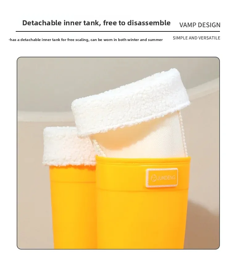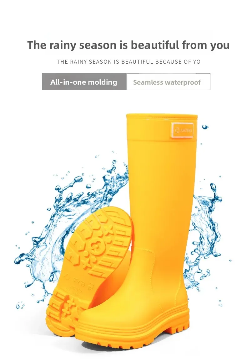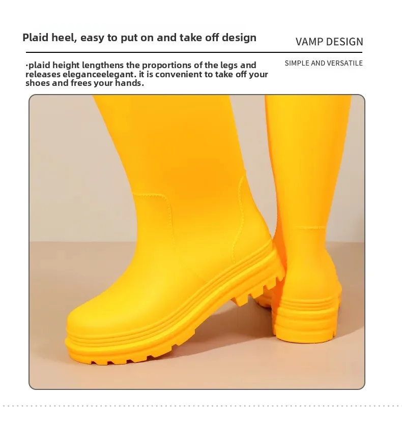 • Design de cano alto:O design de cano alto oferece proteção adicional contra respingos e poças, garantindo que suas pernas permaneçam secas nos dias de chuva.