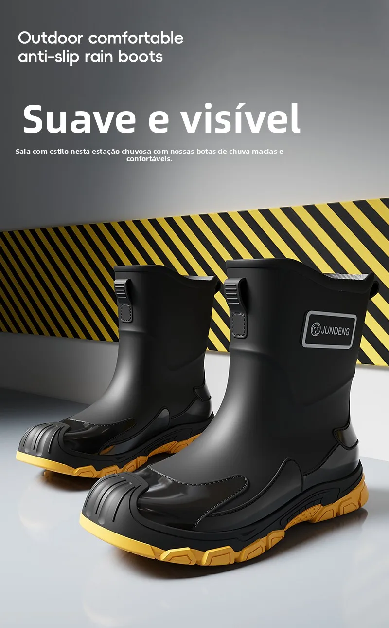 Feito de plástico resistente, estas botas de chuva são duráveis e práticas para uso diário.