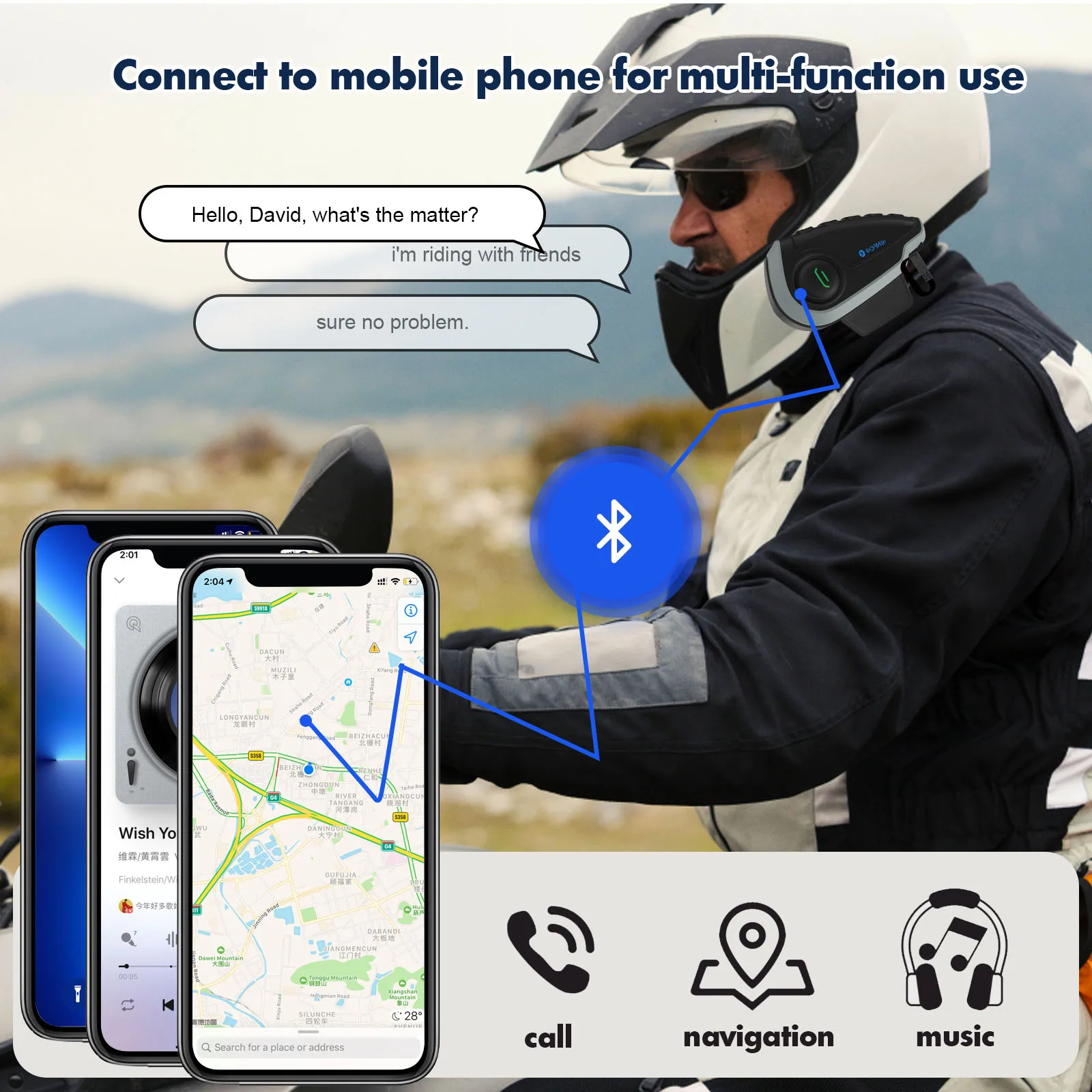 11.Comutação automática entre celular bluetooth, interfone, música estéreo.